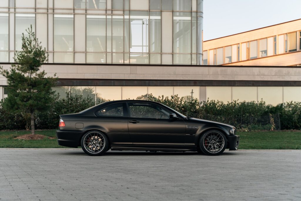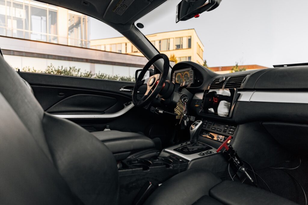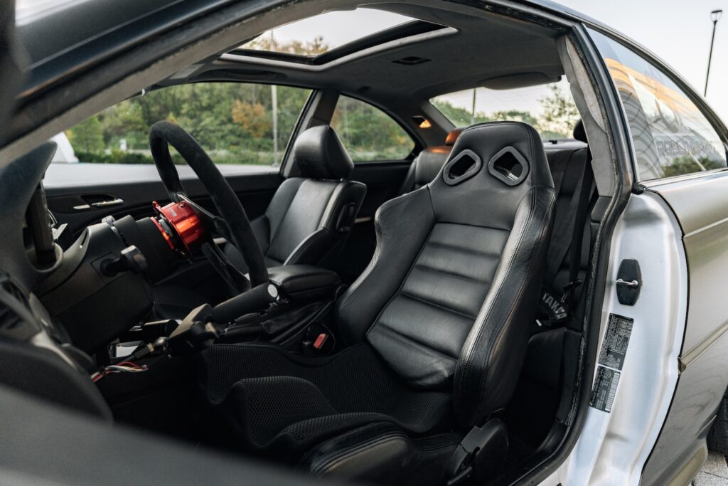 With BC Racing coilovers, a full bushing kit, M3 front and rear subframes, and APEX ARC8 wheels shod in sticky rubber, the car’s exterior hint that it was built for more than just sitting in a parking lot.