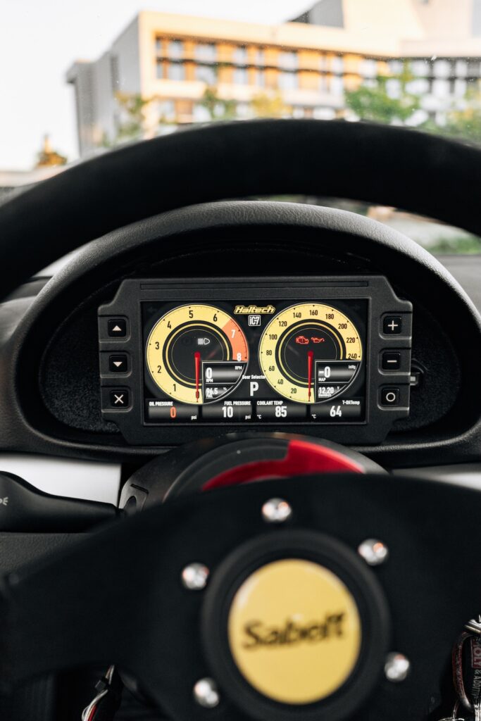 Mated to the motor is an “8HP70” eight-speed automatic transmission, one of the most robust performance automatics available. It’s controlled via a Turbolamik TCU, with throttle and brake inputs managed by 3D-printed hand controls. Engine monitoring is handled through a Haltech IC7 digital dash.