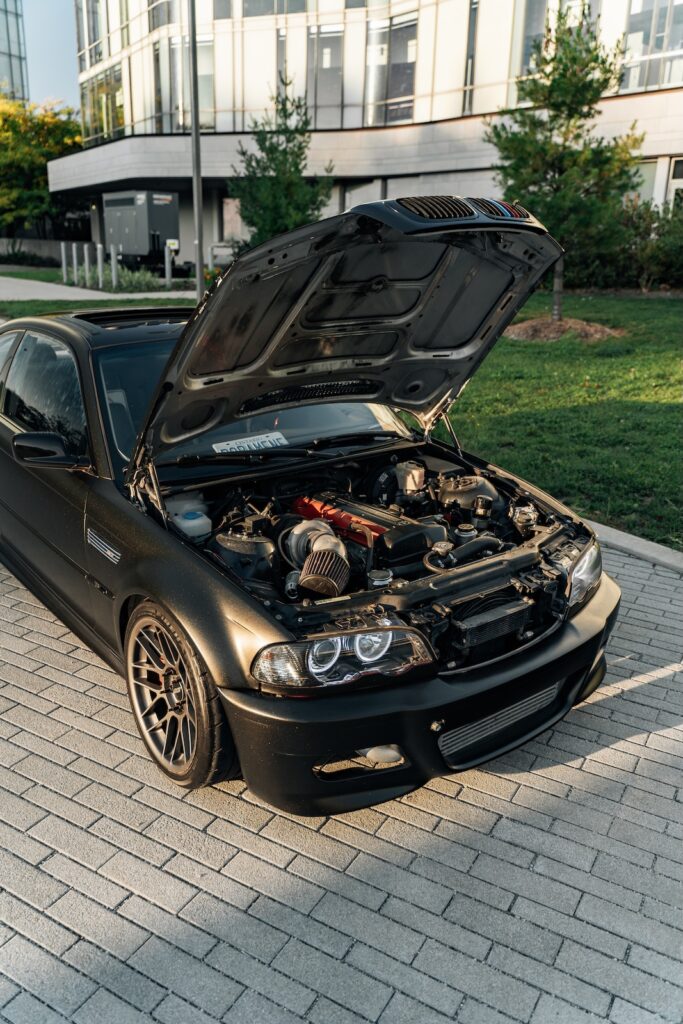 While Lue’s mission and spirit are larger than life, if you were to meet him at a car meet like we did, hanging out next to his 2004 BMW 325ci parked slightly away from the other vehicles, he’d likely introduce himself as “Tony.” Under the hood isn’t the familiar BMW-branded M54 engine, but a Toyota emblem—a single turbo converted 2JZ motor in place of the factory German inline-six.
